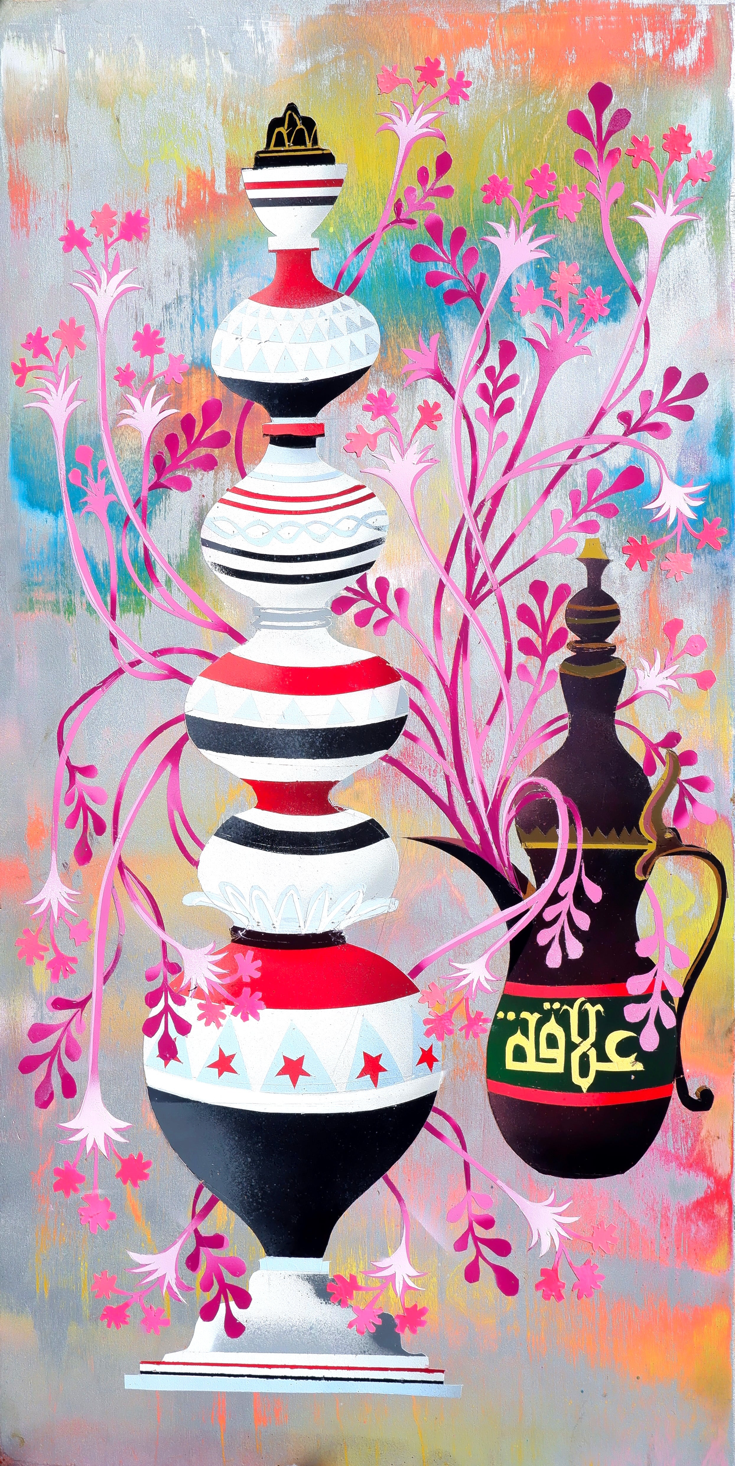 Spray paint on wood panel